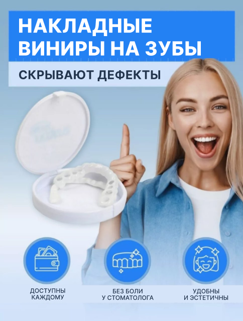 У меня кривые зубы с детства. Когда недавно узнала стоимость установки виниров, волосы встали дыбом... Таких денег у меня нет, но мне всегда хотелось иметь красивые и ровные зубы. Когда увидела Snap-On Smile, сразу же заказала, Так как зубы спиливать не придется и деньги большие выкладывать. Наконец-то моя улыбка стала хорошей. Виниры не мешают приёму пищи, а также говорить. Их легко можно одевать даже на свидание. Всем, кто испытывает проблемы с верхним рядом зубов, очень рекомендую!